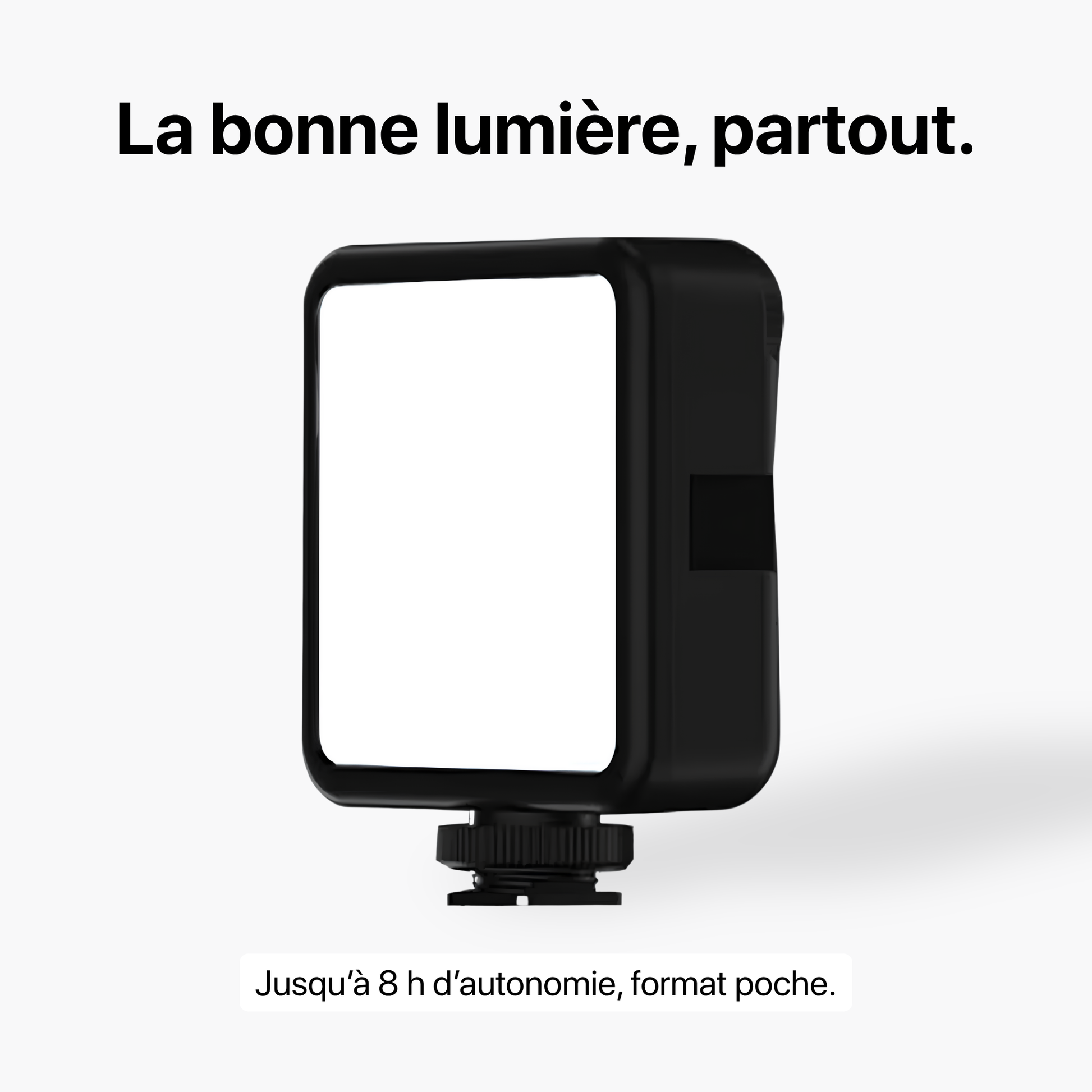 Prise sûre pour suivre le mouvement, lumière diffuse réglable, voix claire malgré le vent.