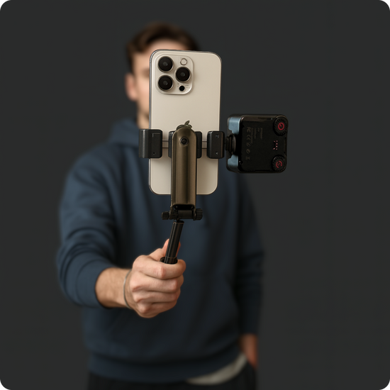 Placés dans l’axe vertical du téléphone, les supports ne décentrent pas le poids. Vous gardez une prise naturelle, que ce soit à main levée ou sur trépied, même avec une lumière LED et un micro.